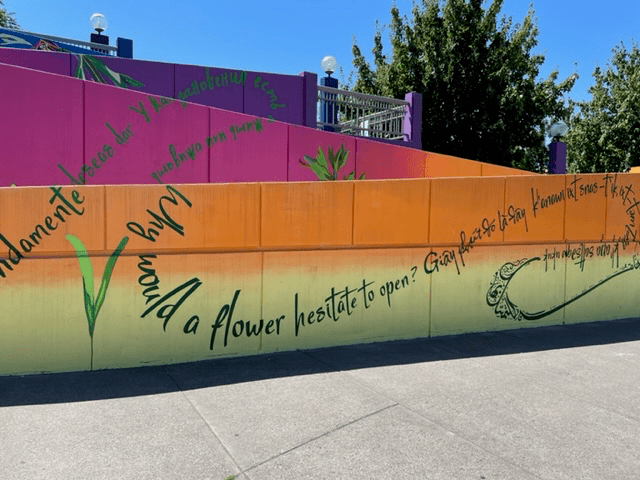 A few years ago up at the Hollywood Transit Center, a mural was painted on the walls that led up to the walkway where one could catch our light rail system, the MAX. One quote on that mural struck my fancy: “Why would a flower hesitate to open?” I have my own interpretations, of course, but for a change I’m going to put this out there to whoever views this: What does this quote mean to you?